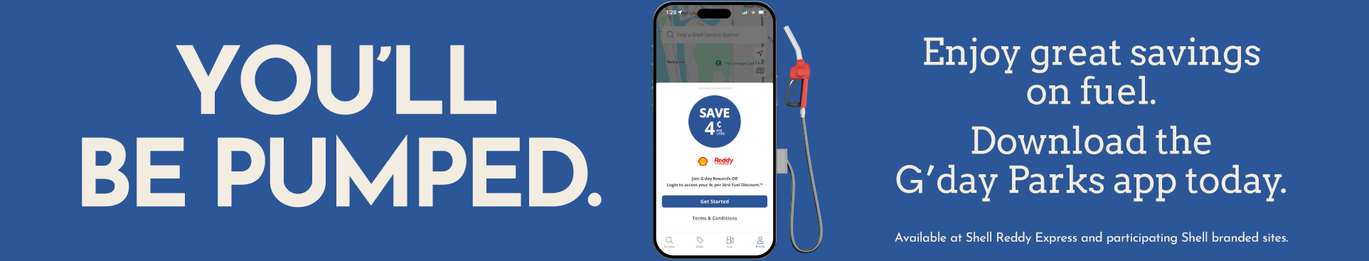 This offer is only accepted and redeemable at Shell Reddy Express and participating Shell branded sites in Australia. To find their nearest store, the user can go to the FUEL page within the G'day Parks app or visit this store locator: https://www.shell.com.au/motorists/fuel-finder.html.